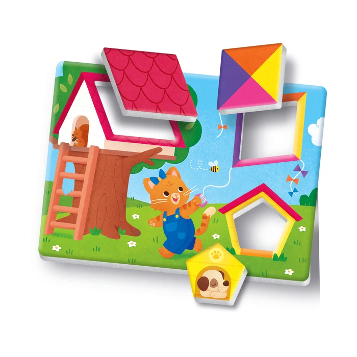 Un jeu simple et amusant pour encourager les plus petits à reconnaître les formes géométriques et les 4 couleurs principales.