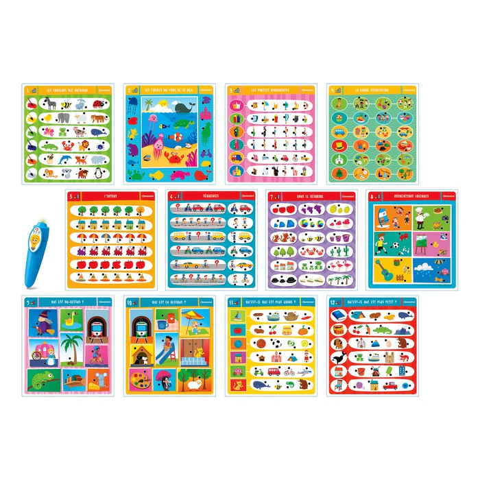 6 grandes fiches proposant 12 activités éducatives et plus de 200 quiz à résoudre à l’aide du stylo.