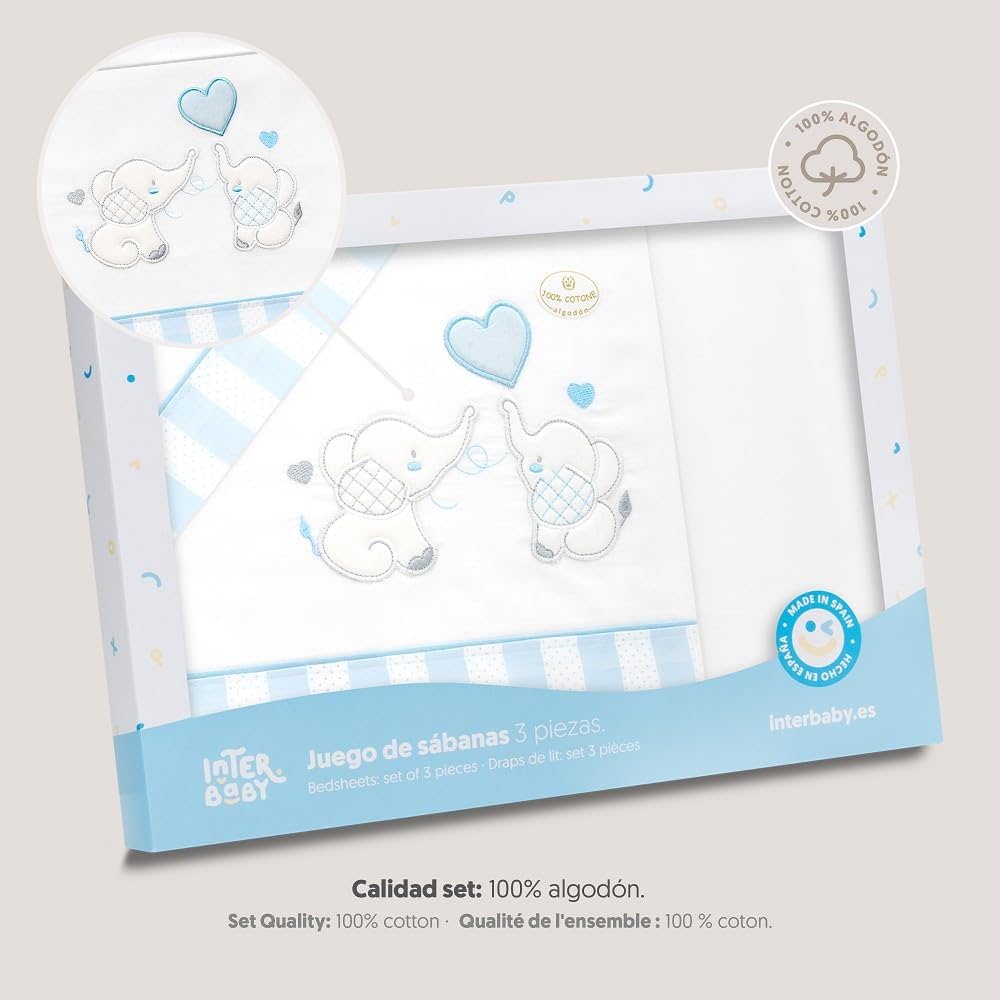 Interbaby Parrure de Lit 60x120cm Elephants Bleu