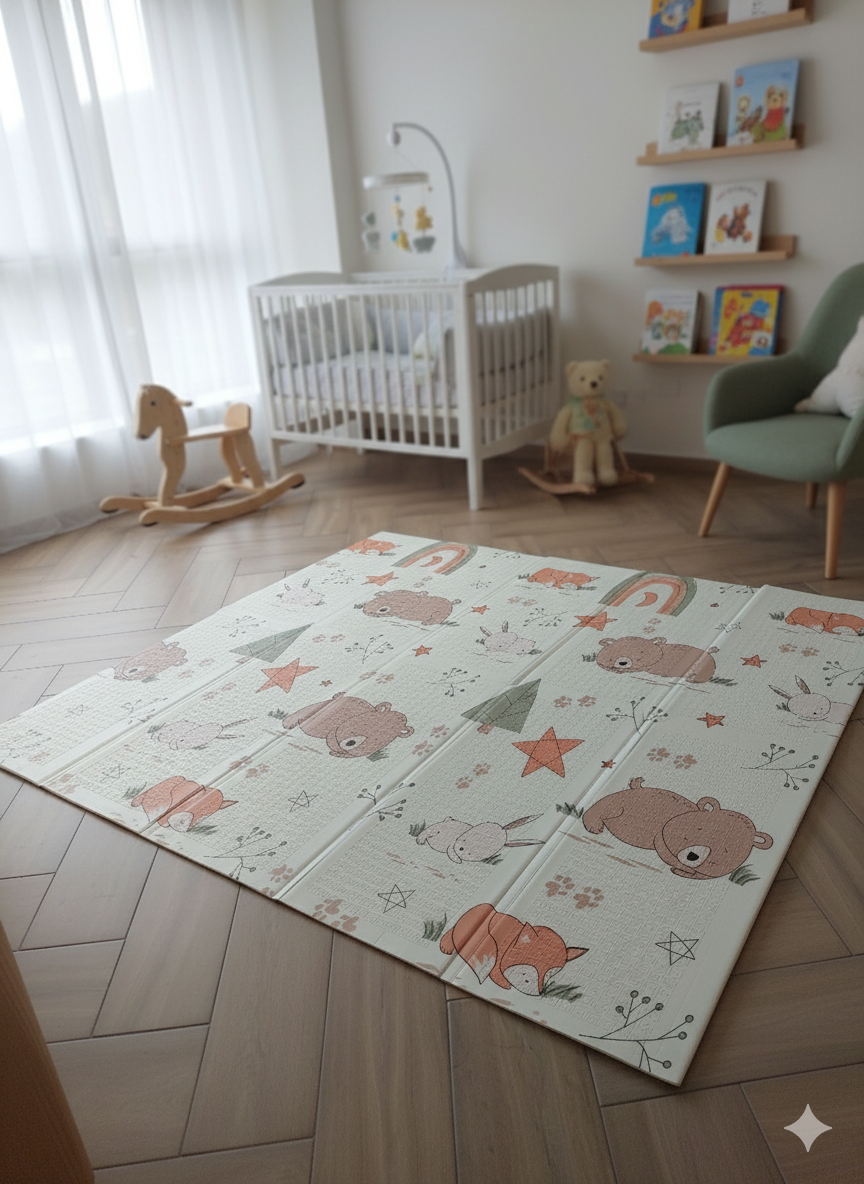Découvrez notre tapis d’éveil pliable et réversible pour bébé, spécialement conçu pour offrir à votre enfant une zone de jeu spacieuse et stimulante, est un choix idéal pour l’amusement à la maison et en déplacement.